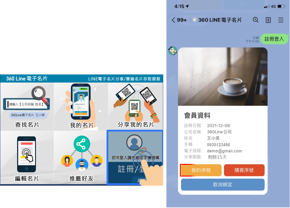 三、啟用序號啟用序號 方法(一)a.點選註冊登入,開啟會員資料 b.點擊「我的序號」立即啟用,延長名片分享期限。作者:Anne 创建时间:2022-06-20 13:59最后编辑:Anne 更新时间:2022-06-21 09:01