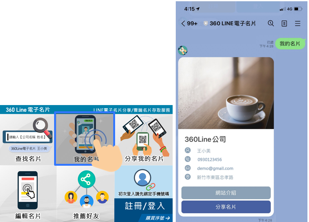 目錄 搜索 展開 360LINE電子名片一、購買流程1.購買序號2.至購物車結帳3.填寫帳單地址 (非必填)4.確認付款方式5.確認訂單6.訂單提交7.匯款完成,啟用序號二、開通、啟用序號流程1.搜尋ID : @360line 加入2.點選註冊/登入3.會員帳號設置三、啟用序號方法(一)方法(二)四、360LINE官方帳號使用說明1.查找名片2.我的名片3.分享我的名片4.編輯名片5.推薦好友6.會員資料 暫無相關搜索結果! 閱讀次數:746 本文檔使用 CLEARONE 發布 2.我的名片 2.我的名片系統提供預設的基本版名片,您可至編輯名片修正內容,再到此處查看您更新後的客製化名片。作者:Anne 创建时间:2022-06-20 14:23最后编辑:Anne 更新时间:2022-06-21 08:41